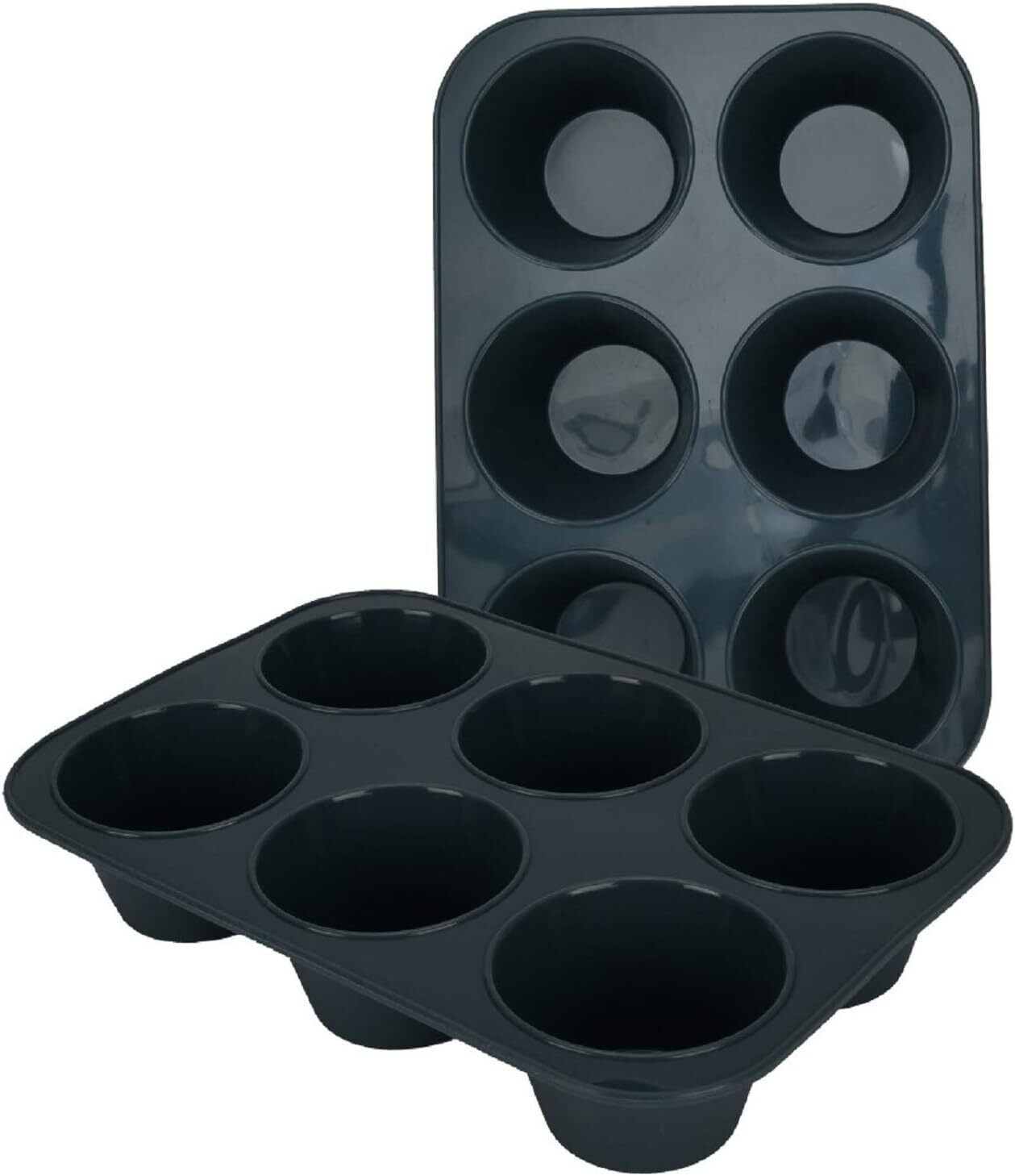 2 Pack Deep and Jumbo Muffin Tray 6 Cup Large Silicone 27.8 x 19 x 5cm, Grey