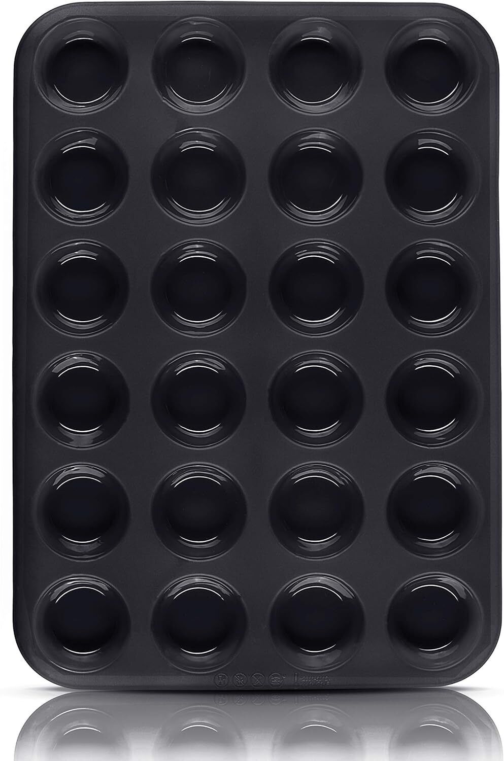 Belmalia Mini Muffin Tray Silicone, 24 Holes, 34 x 24 x 2 cm, Non-Stick Coating, Cupcake Muffins Tin Black