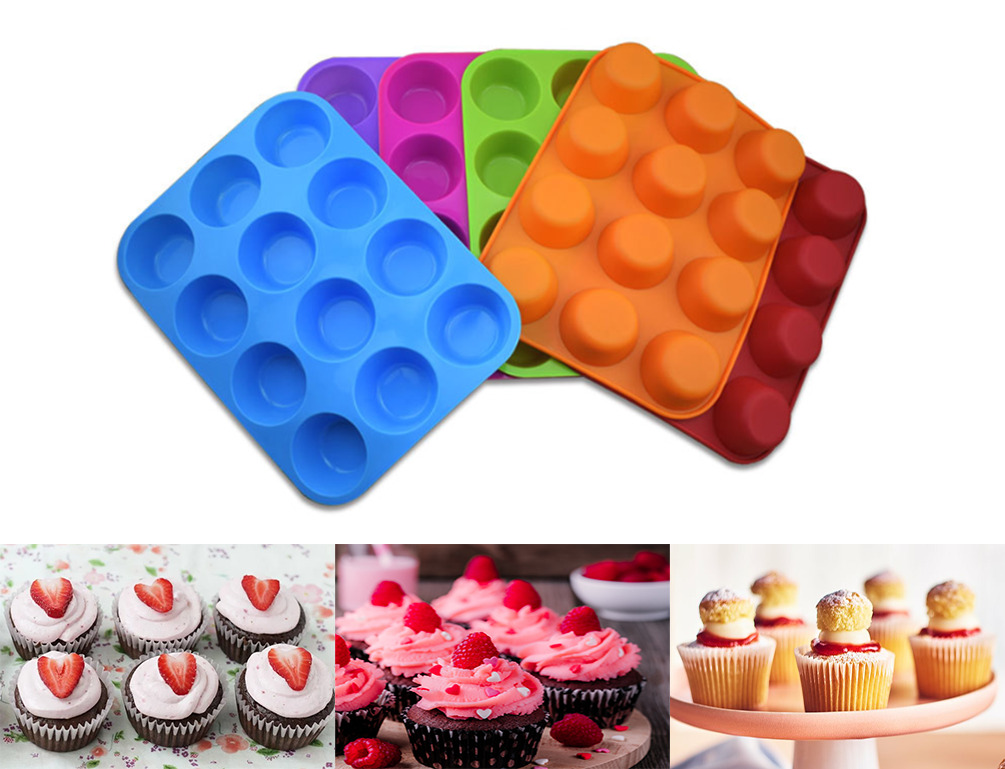 2xSILICONE MUFFIN YORKSHIRE PUDDING MOULD BAKEWARE 12 CUPCAKE BAKING TRAY RANDOM
