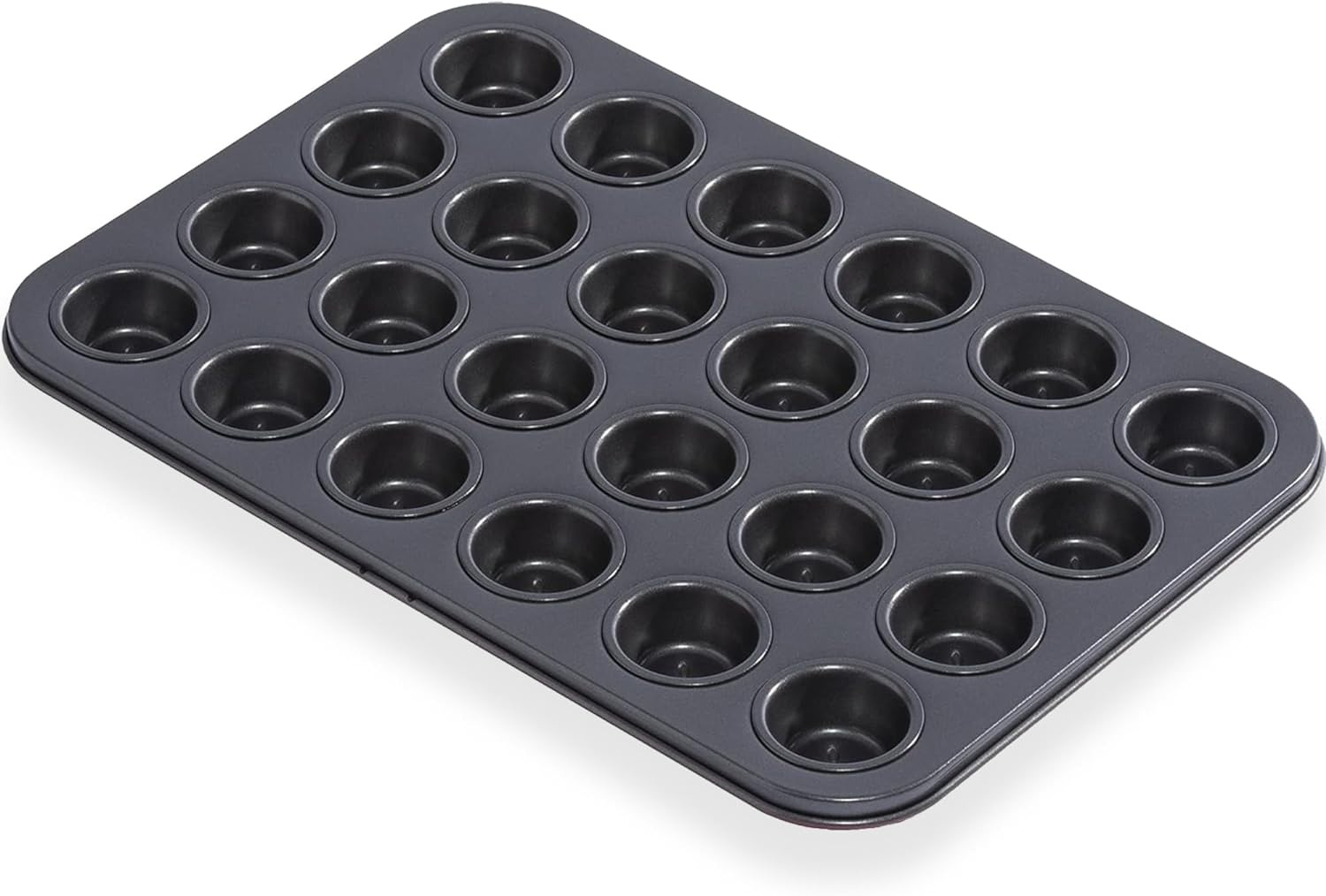 Super Kitchen 24 Cups Silicone Mini Muffin Tray with Metal Frame, Grey