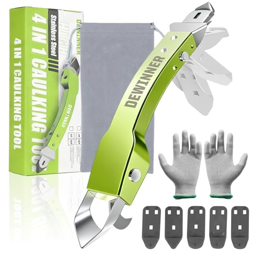 THINKWORK Silicone Caulking Kit, 4-in-1 Sealant Finishing Tool, Stainless Steel Caulk Remover with Pads, Smoothing Removal Tool for Home, Kitchen, Bathroom, Window, Floor, Sink, Tile Joint