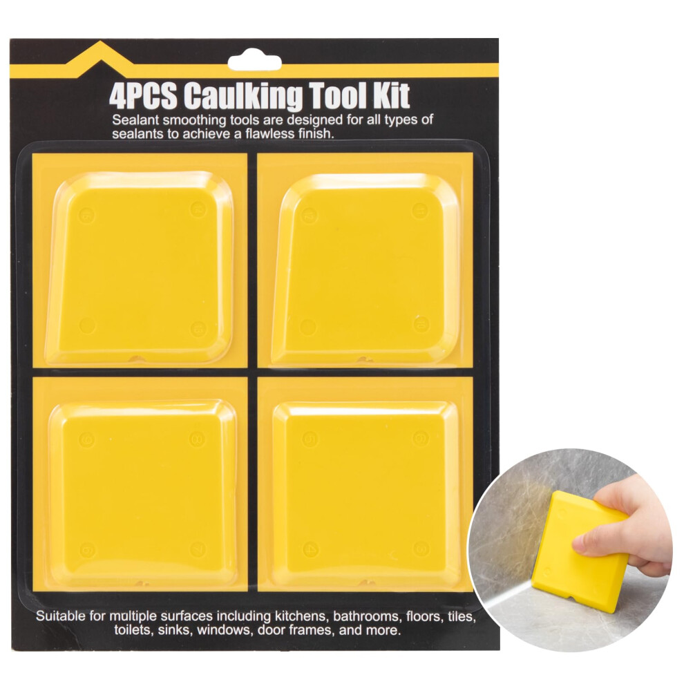 4-Piece Silicone Caulking Tool Kit with Multi-Edge Smoother & Applicator - Professional Sealant/Silicone Smoothing/Finishing Tool for Kitchen, Bathro