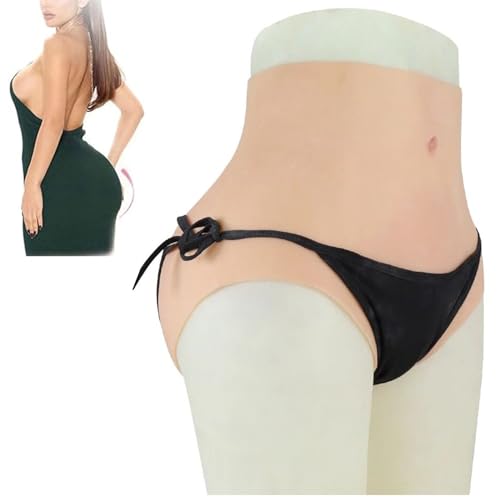XSWL High Waist Silicone Realistic Vagina Pants Artificial Sex Fake Buttock Enhancer for Shemale Crossdresser Transgender Hip Lift,Color 1,One Size