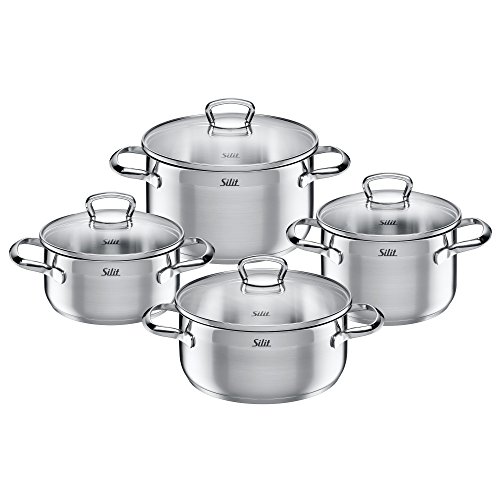 Silit 2109273608 Toskana Glass Lid Pot Set, Silver, 4-Piece