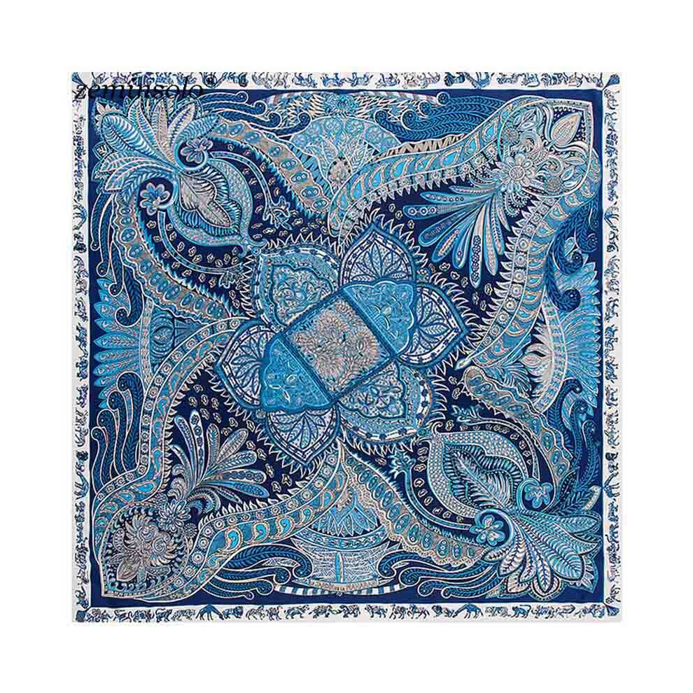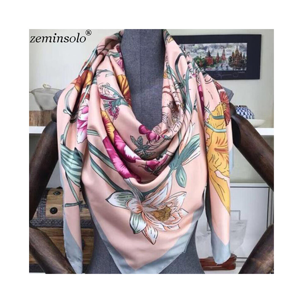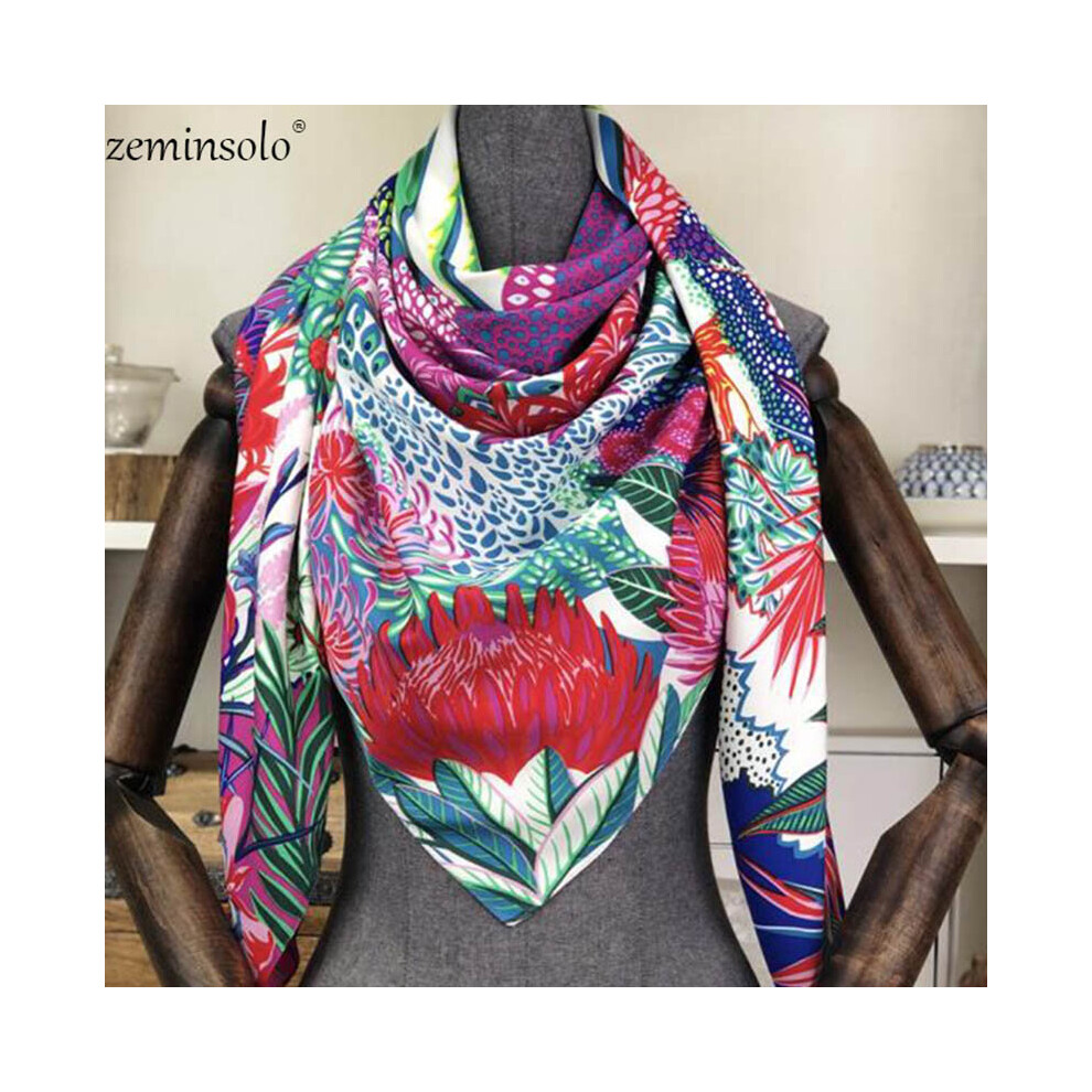 Square 100% Twill Silk Scarf Bandana Women Shawls 130*130cm Bufanda Large Floral Printed Scarves Stoles Scarf Kerchief Hijab