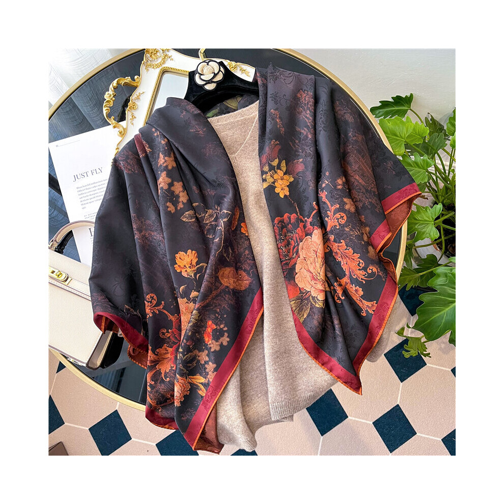 100% Silk Scarf Bandana Women Scarves Floral Printed Square Scarf Female Hijab Shawls Neckerchief 130*130cm