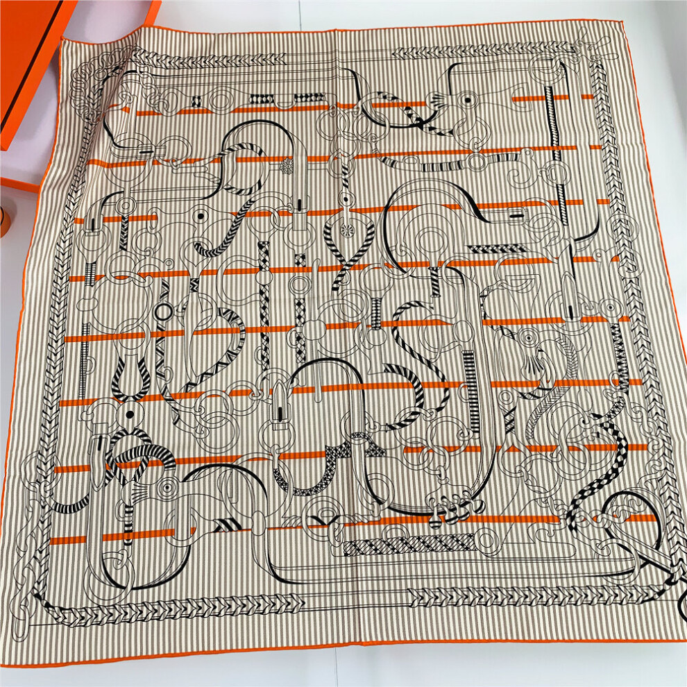 Chain Square Scarf Hijab 130*130cm Twill Silk Scarf Bandana Women Kerchief Scarves For Ladies Shawls
