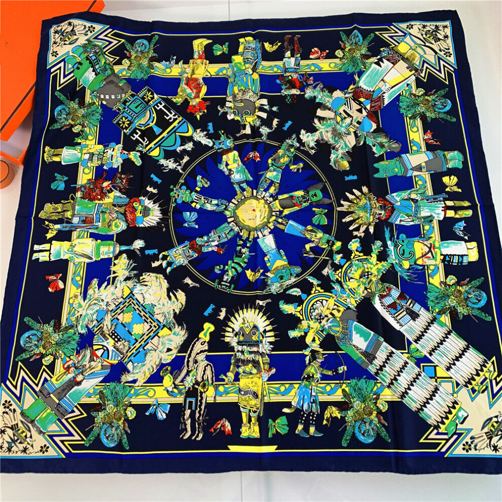 Manual Hand Rolled Twill Silk Scarf Women Indian Hopi Print Square Scarves Wraps Echarpes Silk Foulards Femme Bandana Hijab
