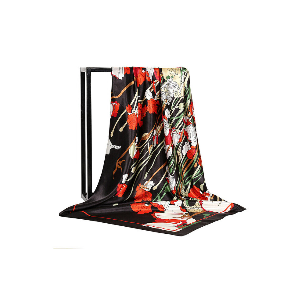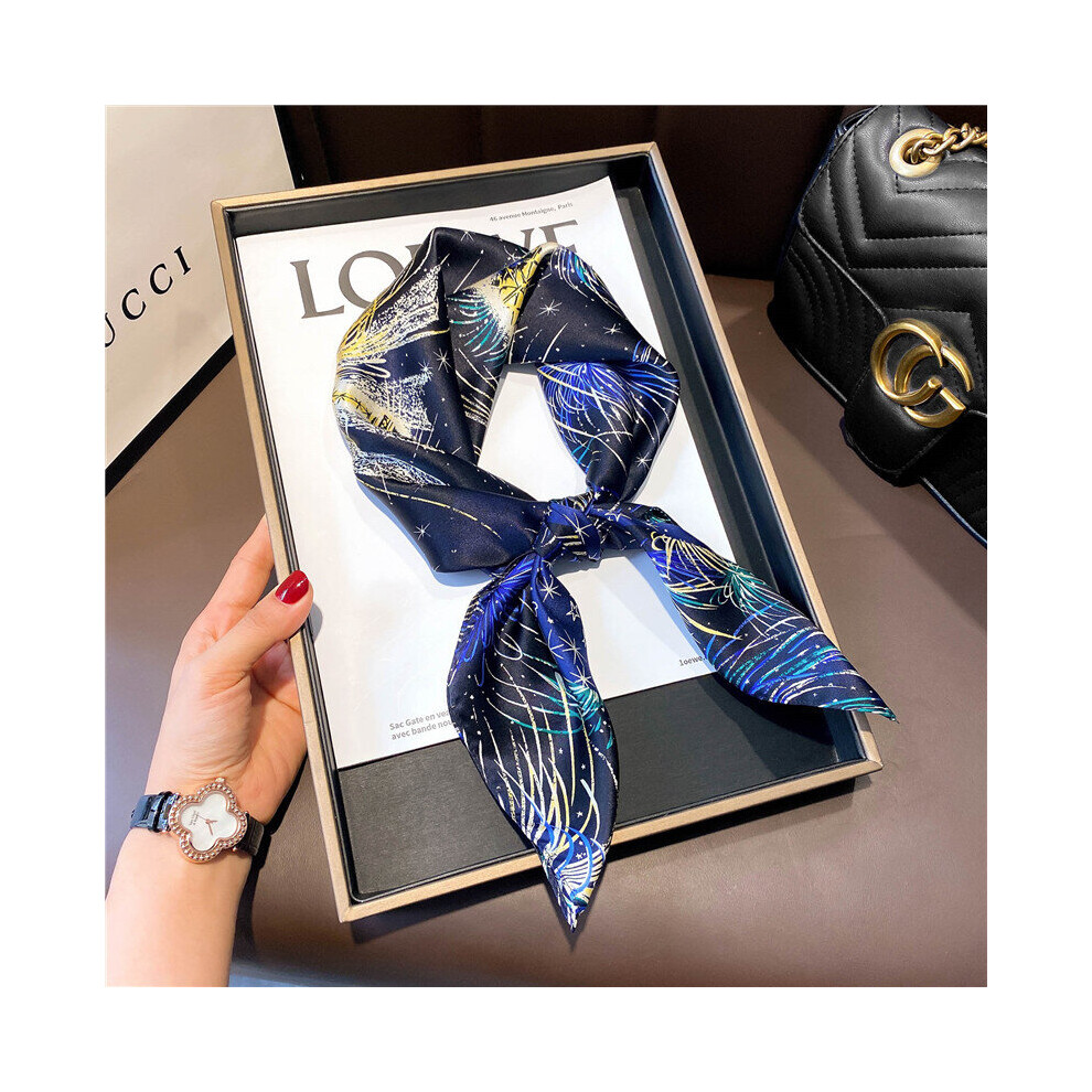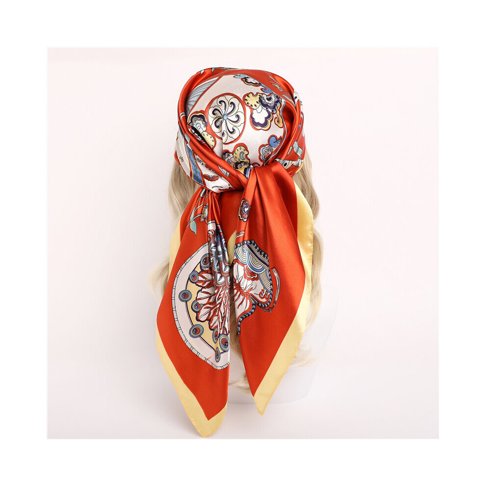 Square Neckerchief Female Double-side Print Hijab Large Shawl Headband Scarf for Women Silk Feeling Bandana