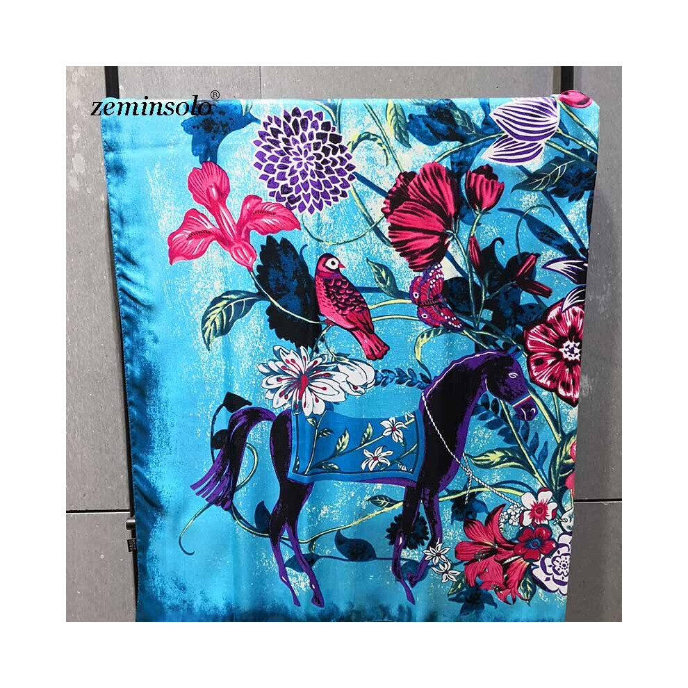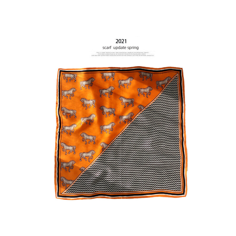 100% Silk Scarf Bandana Women Horse & Ripple Print Kerchief Head Neck Hairband Turban 53*53cm