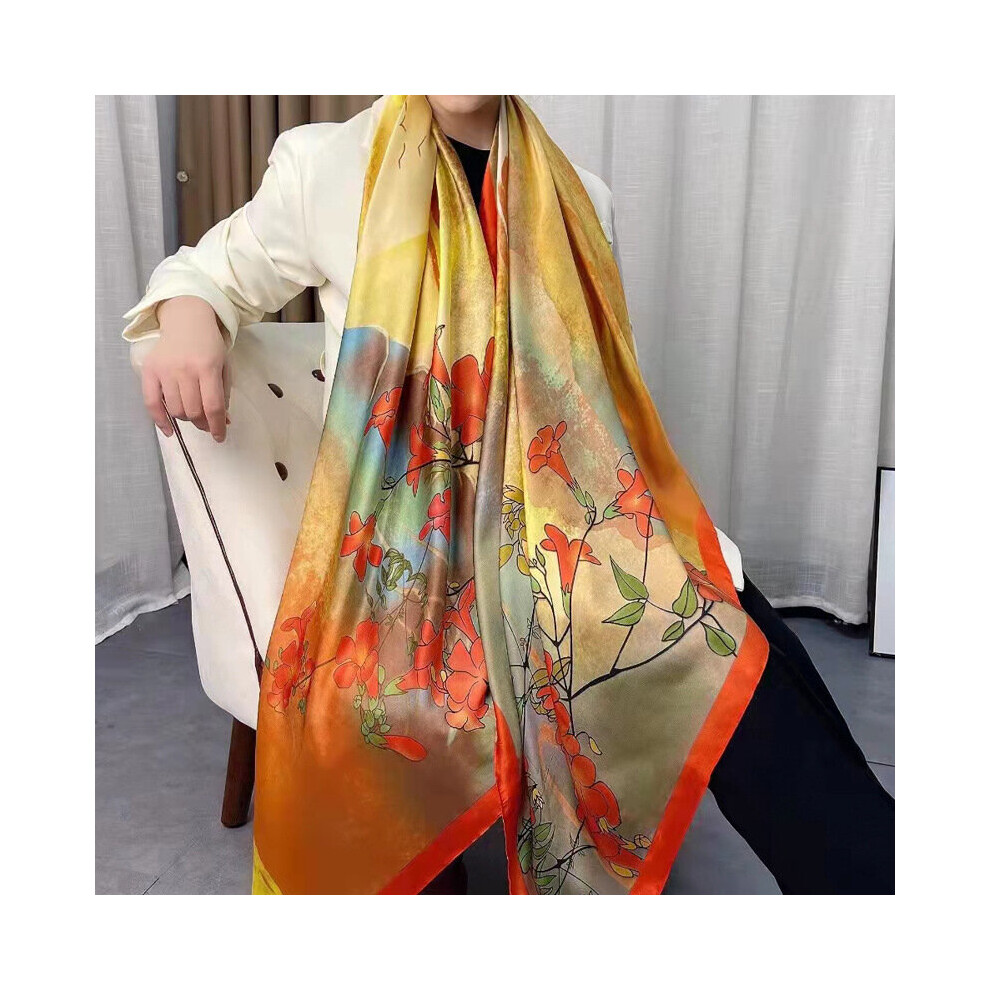 130*130cm Twill Silk Scarf Bandana Floral Printed Scarves For Women Headband Square Scarves Shawls Poncho Hijab