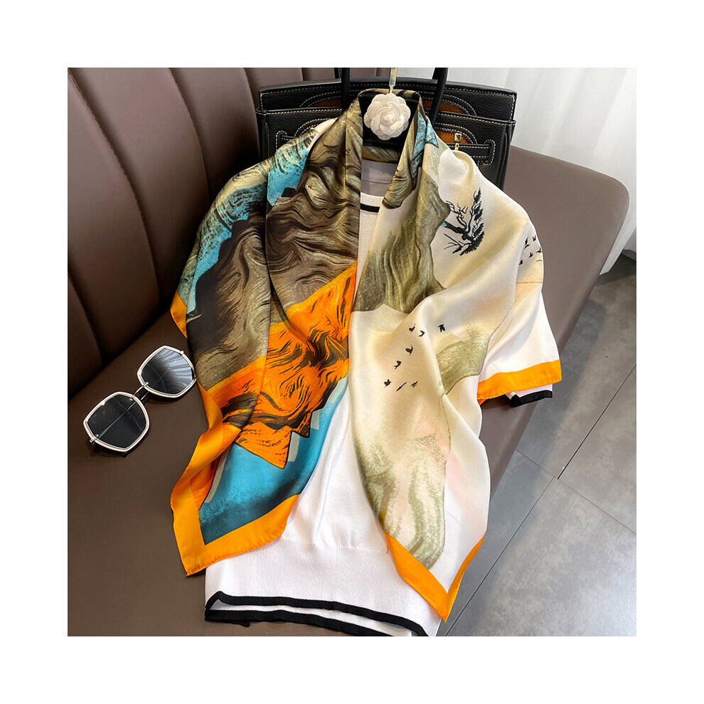 Women Silk Scarf Print Lady Beach Shawl Scarves Satin Foulard Female Hijab Bufanda Silk Bandana Sjall