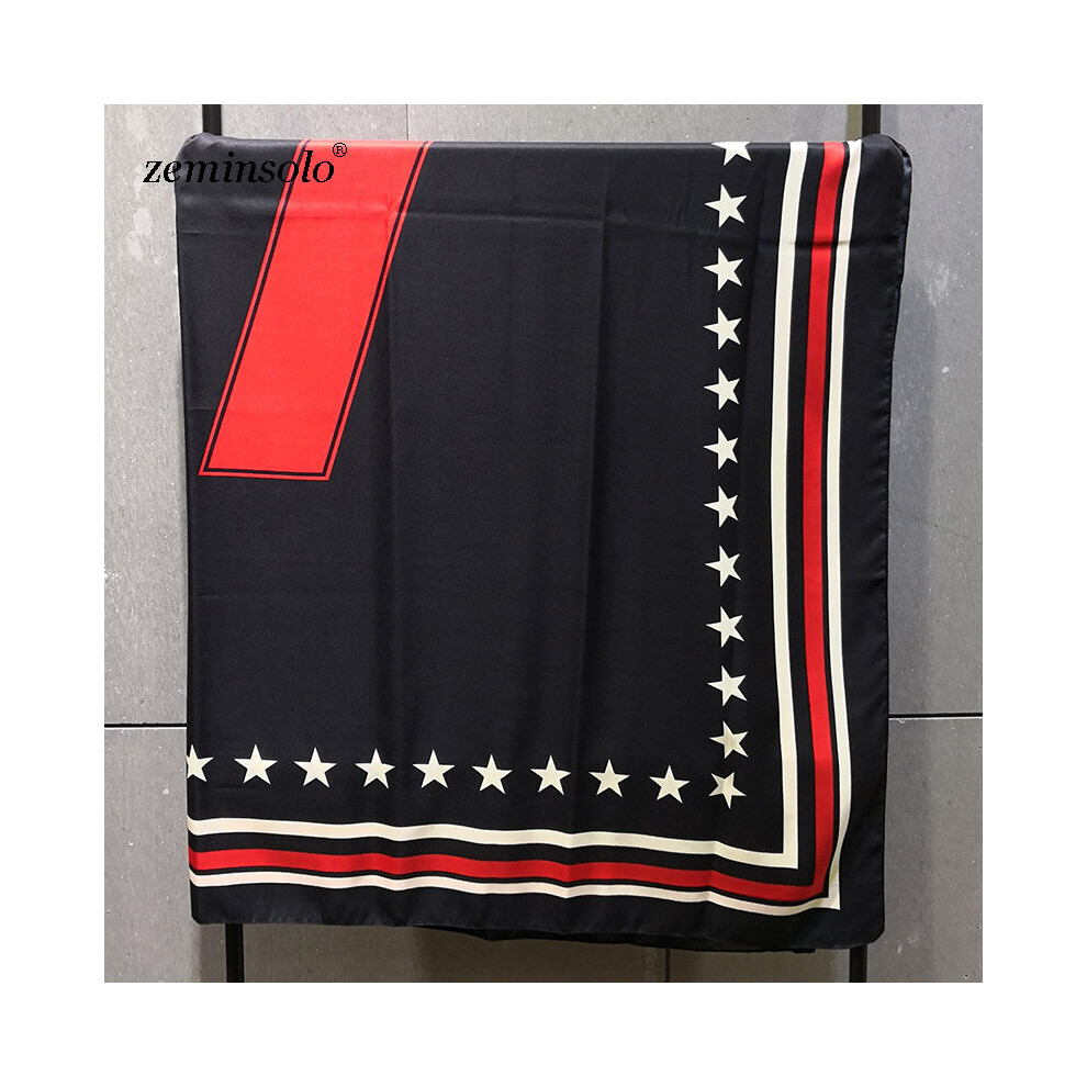 130*130cm 5 Stars Print Large Square Silk Scarf Shawl Hijab For Women 100% Twill Silk Scarf Bandana Head Scarves Wraps