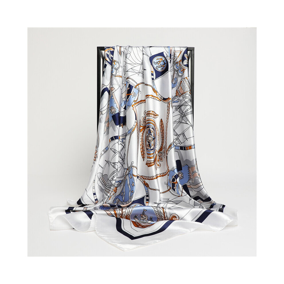 XKUN Silk Scarf Sailing Boat Anchor Women Small Square Silk Scarves Business Bandana Ladies Striped Print Satin Scarf-Navy Blue,23.62 * 23.62In(60 * 60Cm)