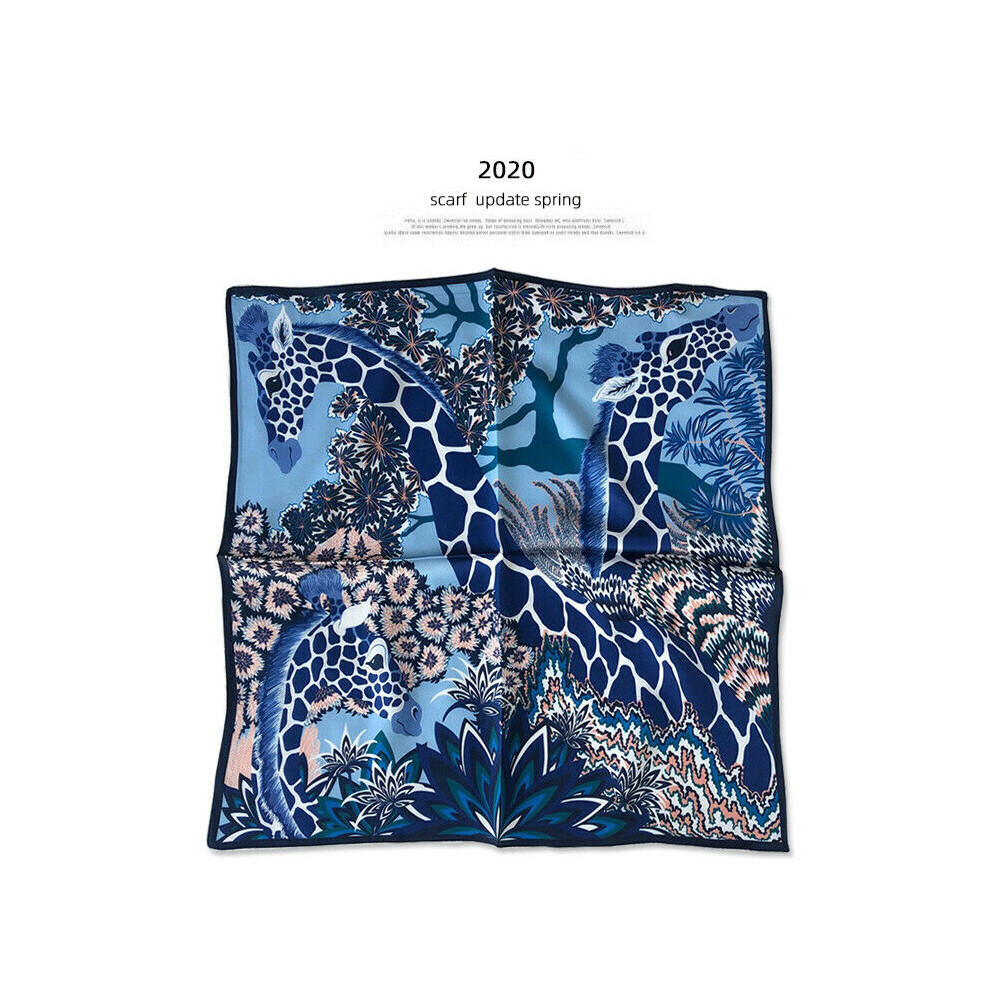 Women Small Scarf 100% Silk Bandana Giraffe Print Neckerchief Girls Headband Turban Gift 53*53cm
