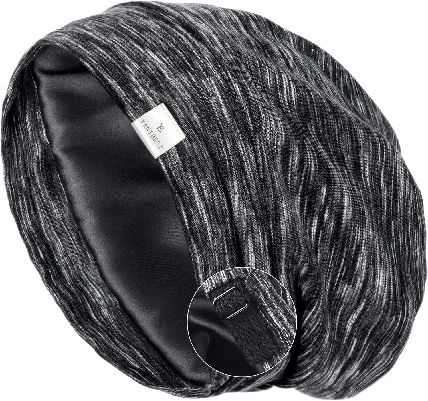 YANIBEST Silk Satin Bonnet Hair Wrap for Sleeping - Adjustable Stay on Silk Lined Slouchy Beanie Hat for Curly Hair and Braids