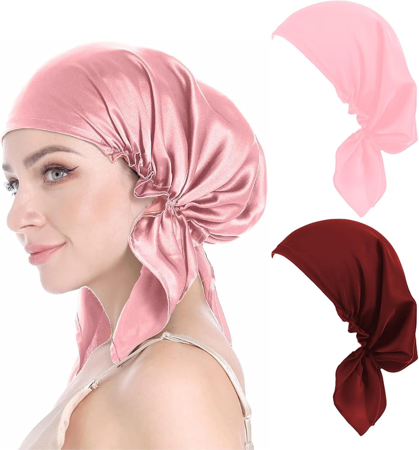 2PCS Satin Bonnet, Silk Bonnet Hair Wrap for Sleeping, Hair Bonnet for Bath, Tie