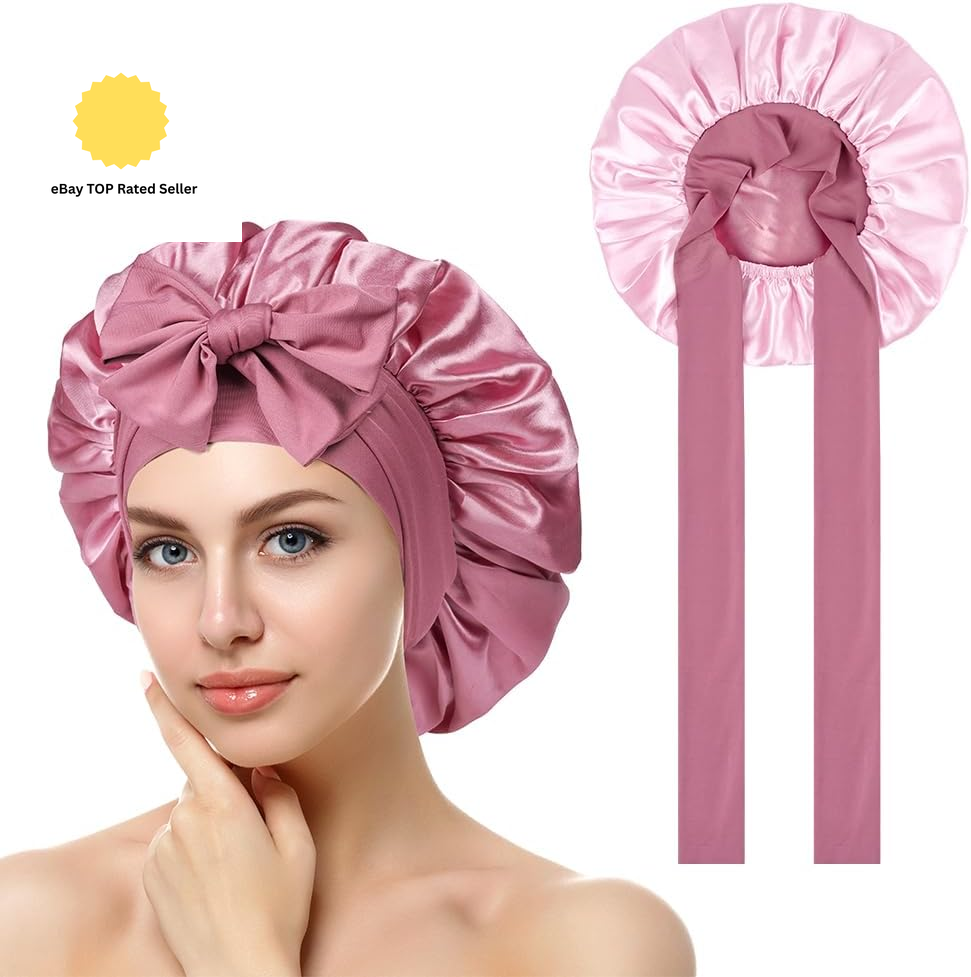 Two-Tone Satin Silk Hair Bonnet for sleeping Women - Sleep Bonnet with Long Rib