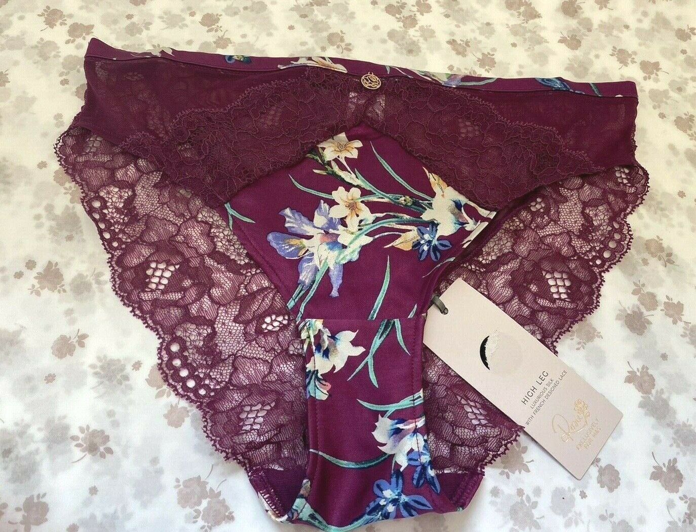 MYLA Rosemoor Street Silk & French Leavers Lace Knickers L 12 - l4 RRP £145 BNWT