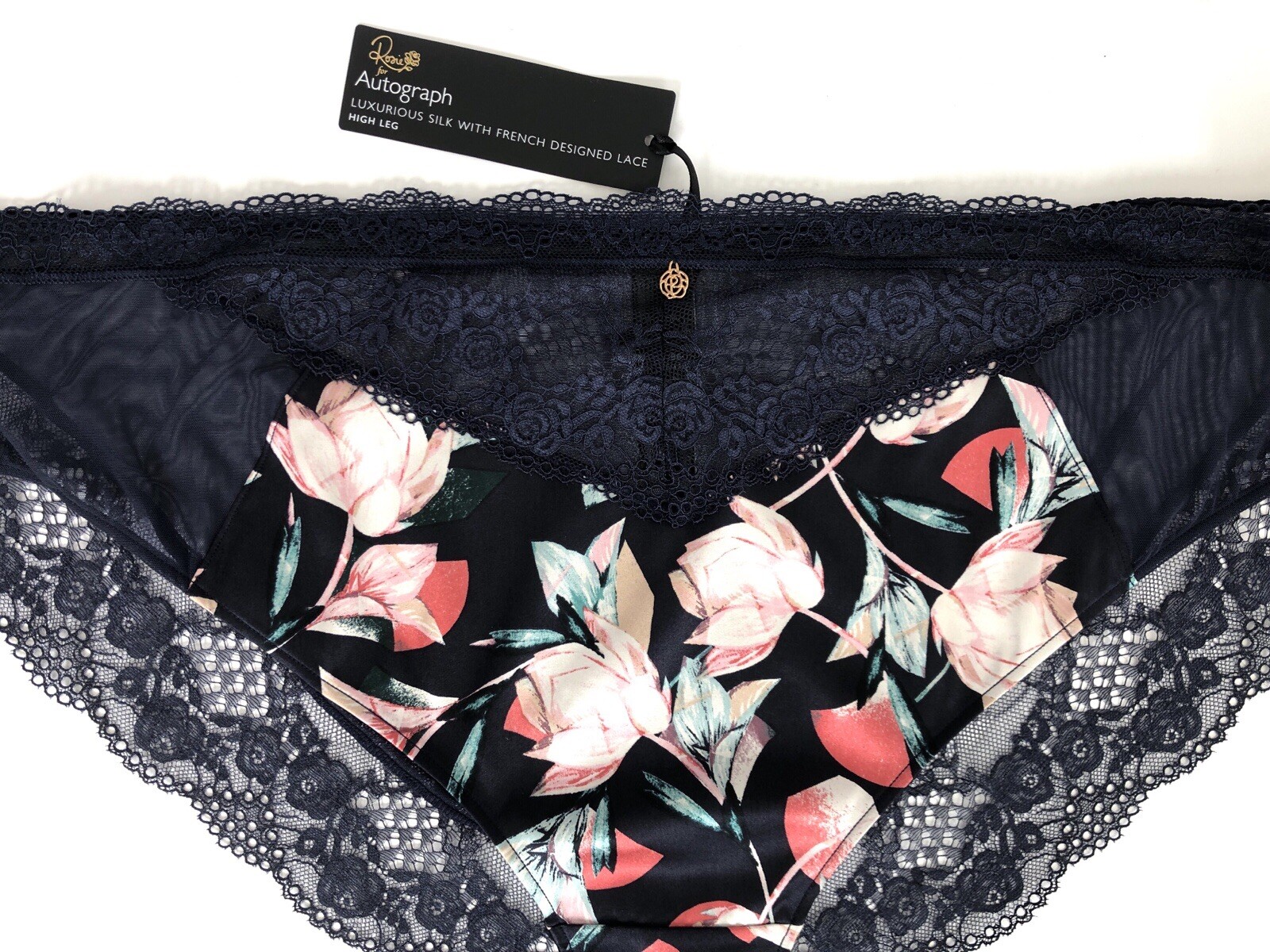 M&S Rosie for Autograph Silk & Lace High Leg Knickers 18 Black