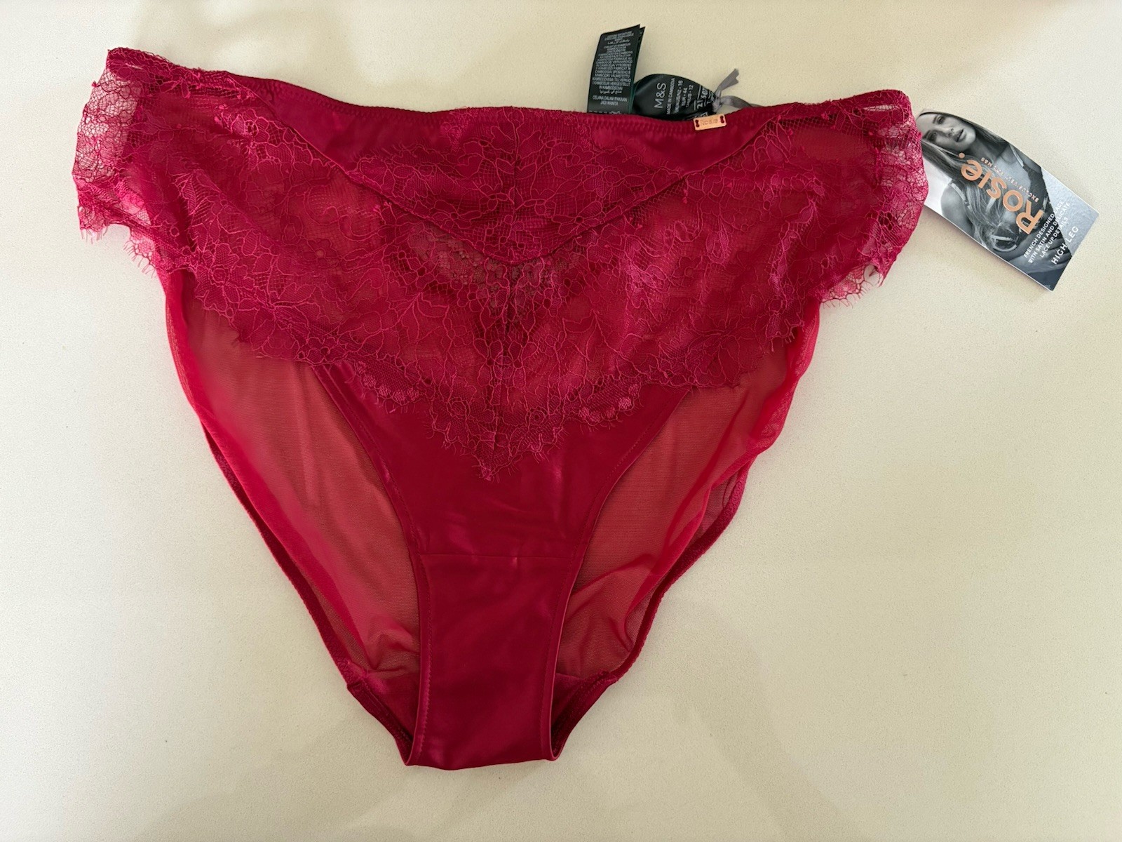 M&S Rosie for Autograph Silk & Lace High Leg Knickers 12 Redcurrant