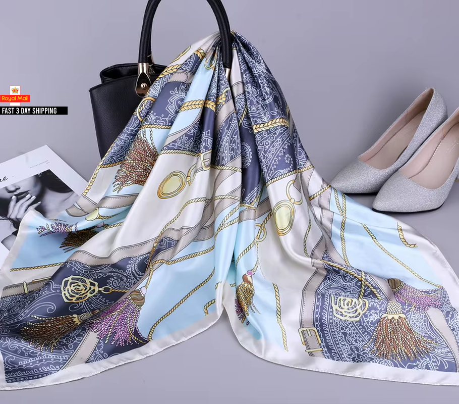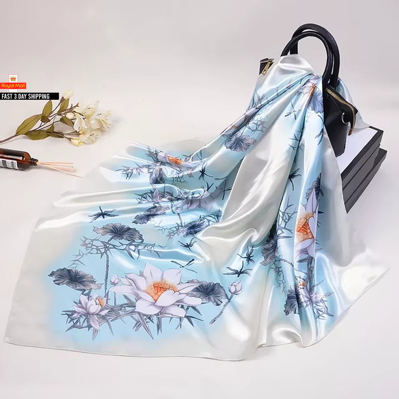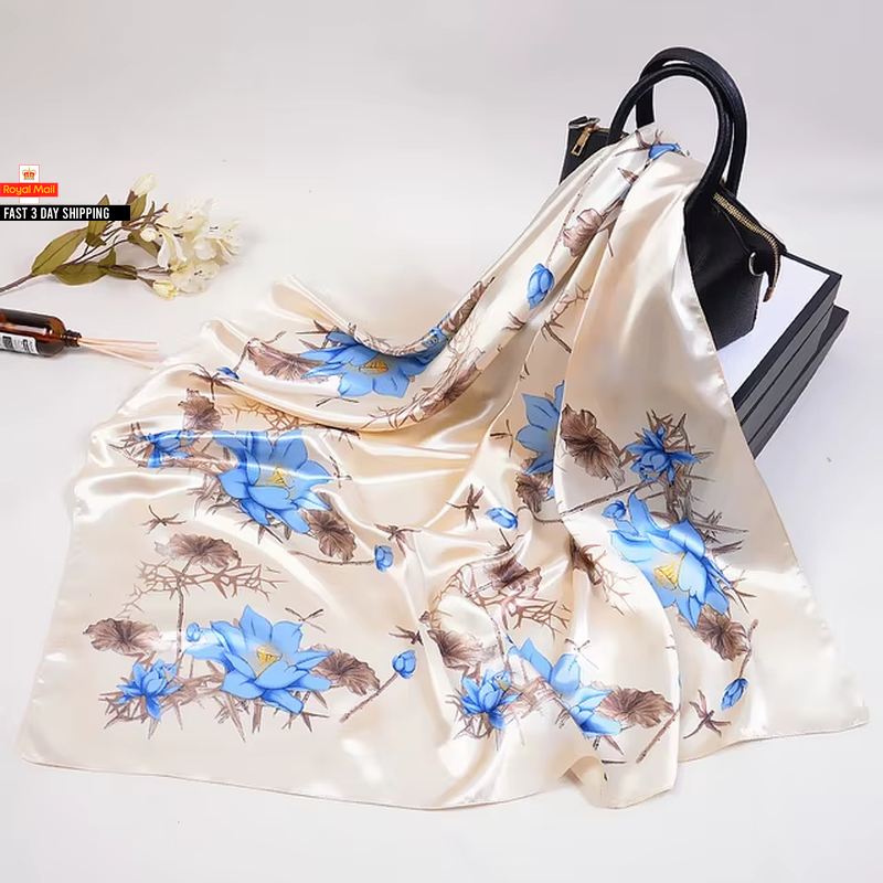 Trillion London® Spring Collection | Blue Floral Silk Neck Scarf For Women | Ladies Lightweight Scarves | Shawl Wraps | Suitable for Daily Life, Gifting | Smooth Soft Finish | Size - 180cm*90cm