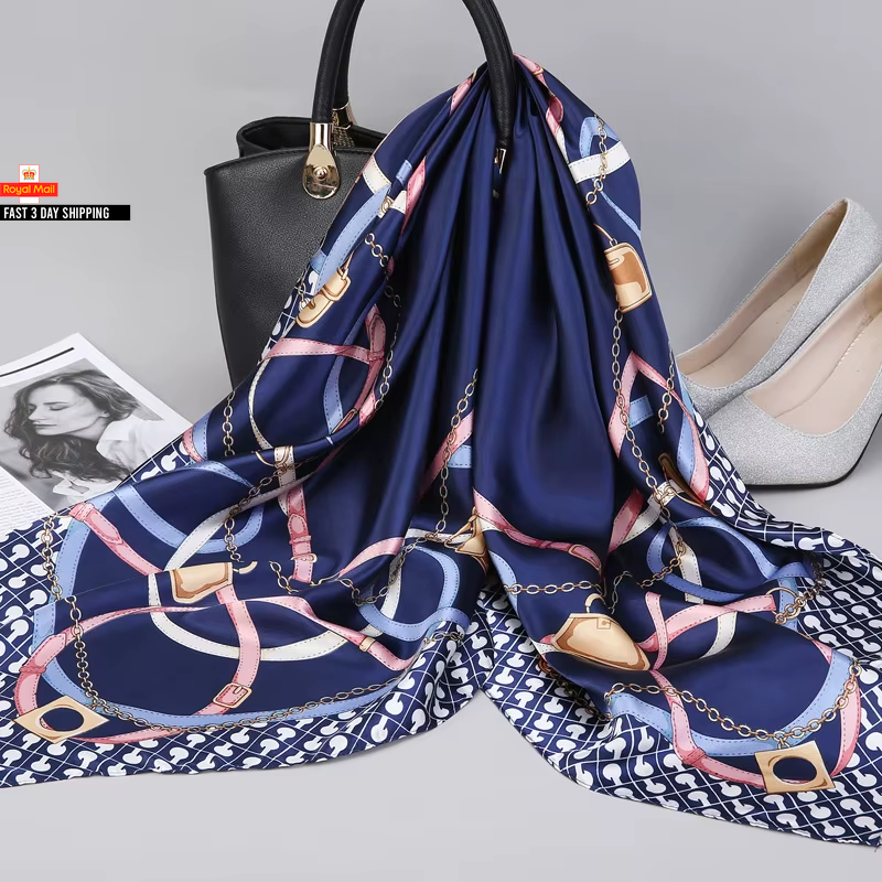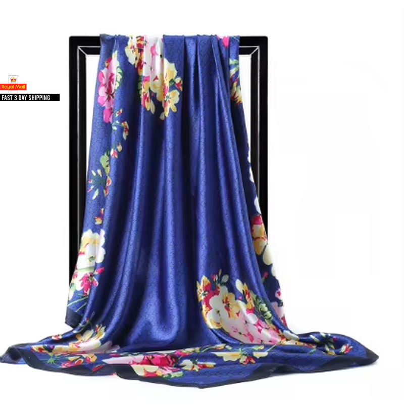 Trillion London® Silk Scarf| Navy Blue Flower Print | Silk Neck Scarf For Women | Lightweight Scarves for Ladies | Shawl Wraps | Suitable for Gifting | Smooth Soft Finish | Size - 180cm*90cm