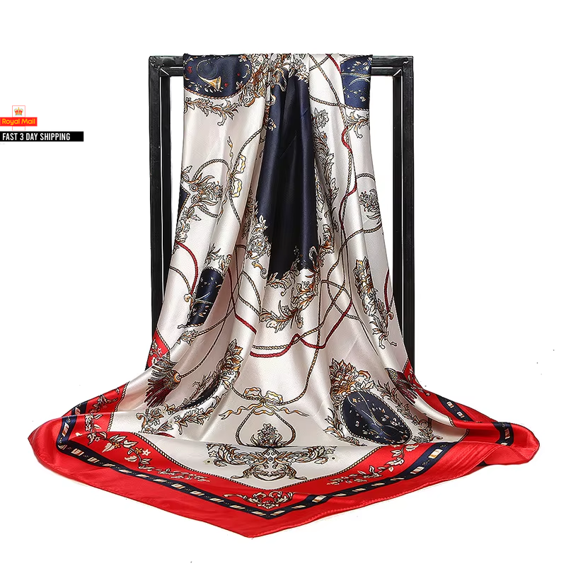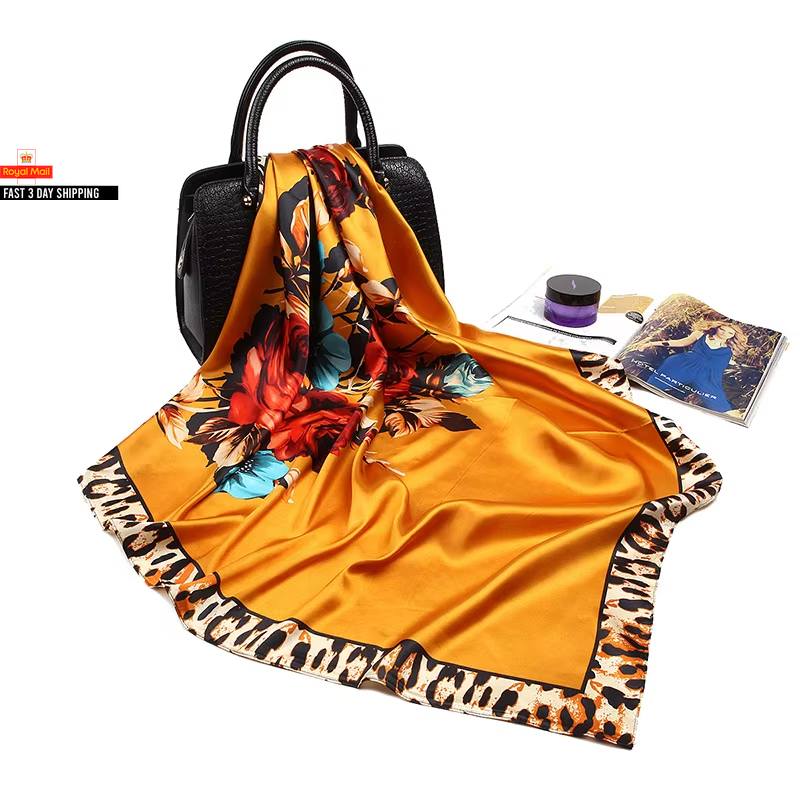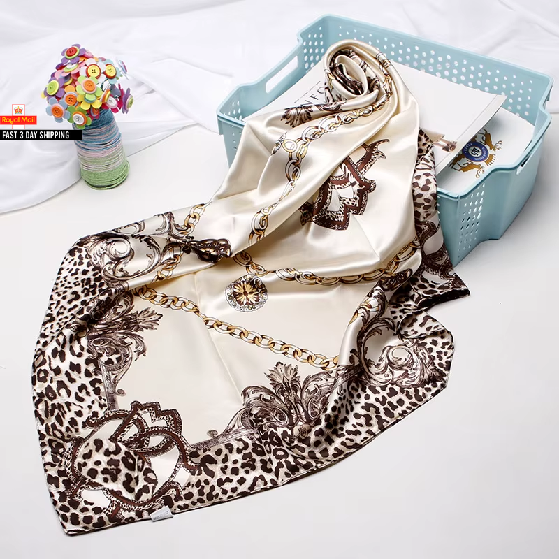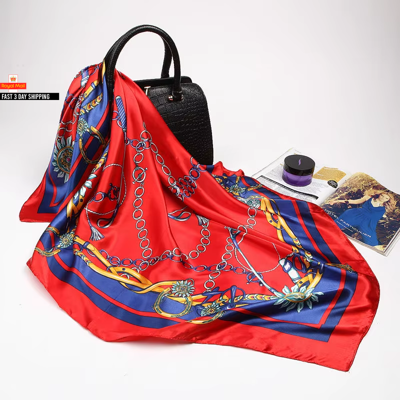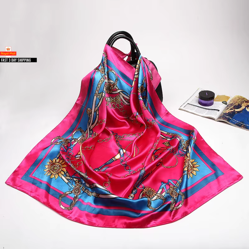 Fashion Kerchief Silk Satin Neck Scarf for Women Print Hijab Scarfs Female 90*90
