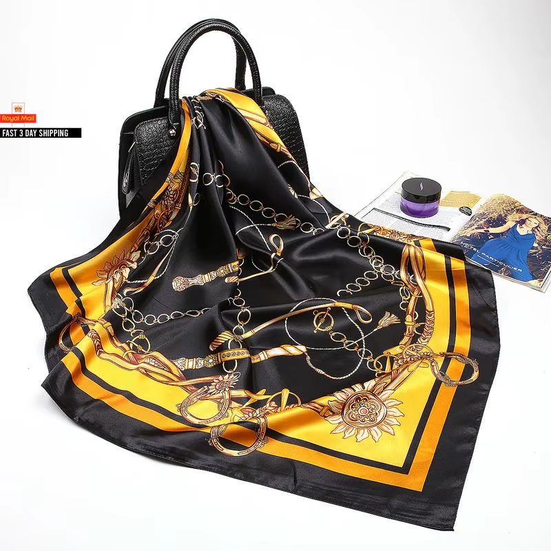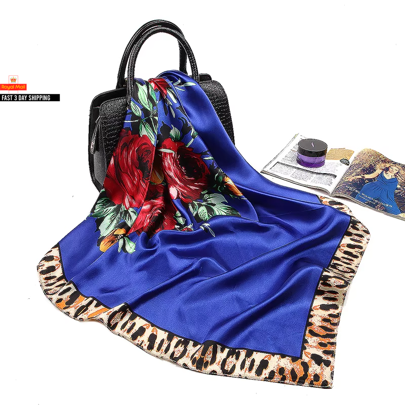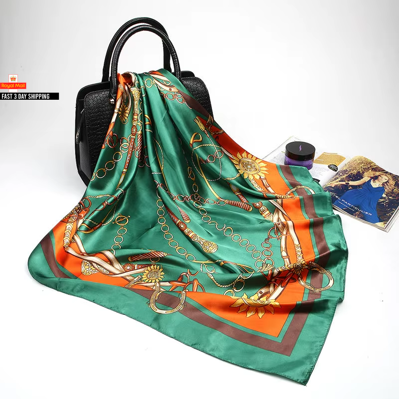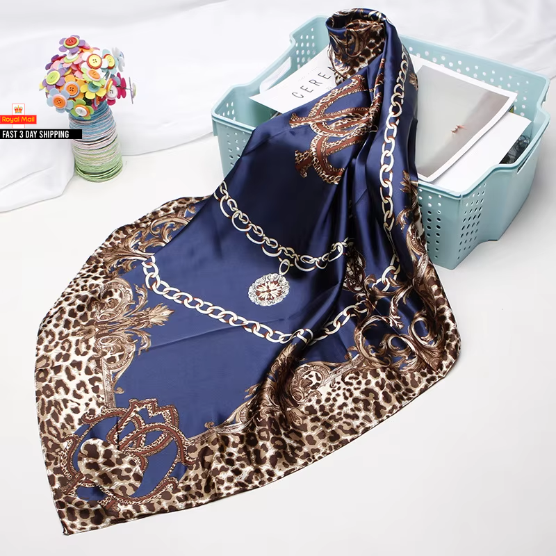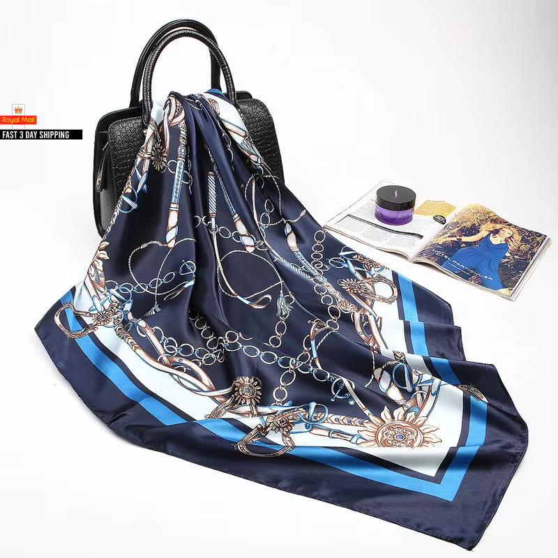 Fashion Kerchief Silk Satin Neck Scarf for Women Print Hijab Scarfs Female 90*90