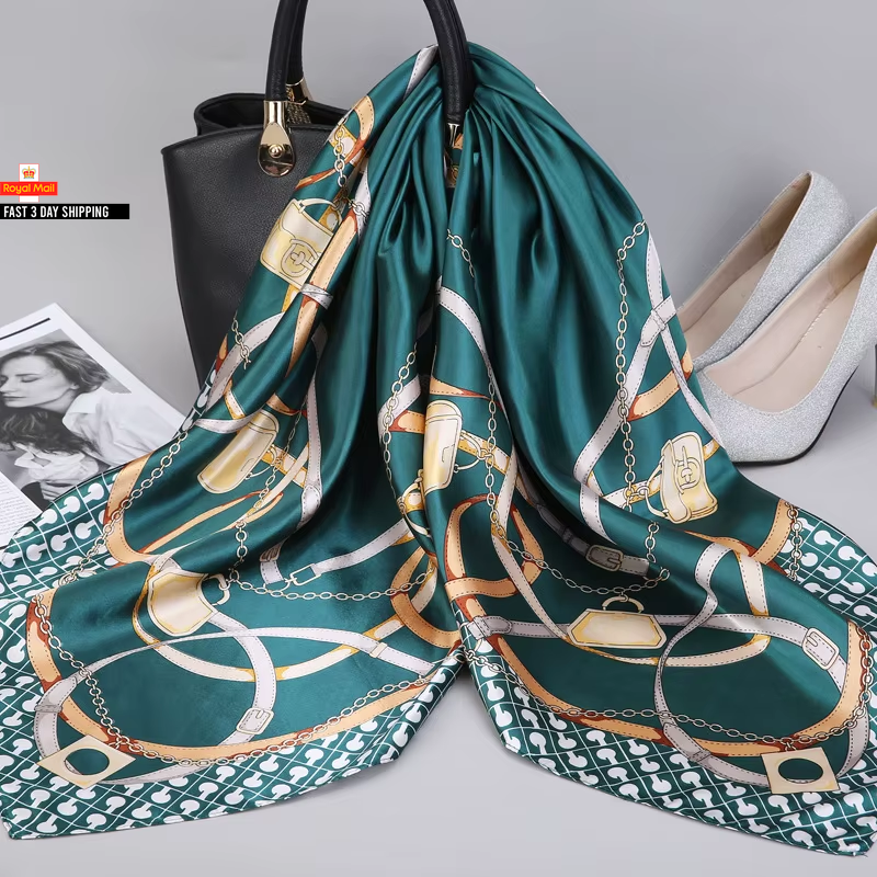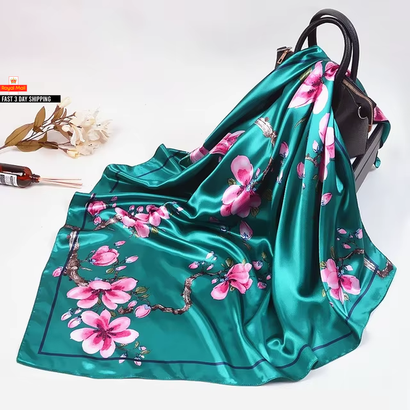 Trillion London® Silk Scarf | Long Neck Scarf for Women | Ladies Lightweight Scarves | Shawl Wraps | Suitable for Daily Life | Travelling & Gifting | Soft Finish| Size-180cm*90cm (Green Floral)