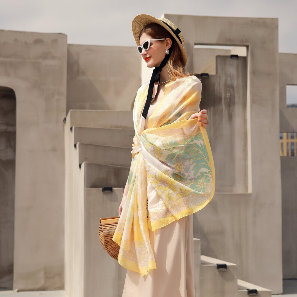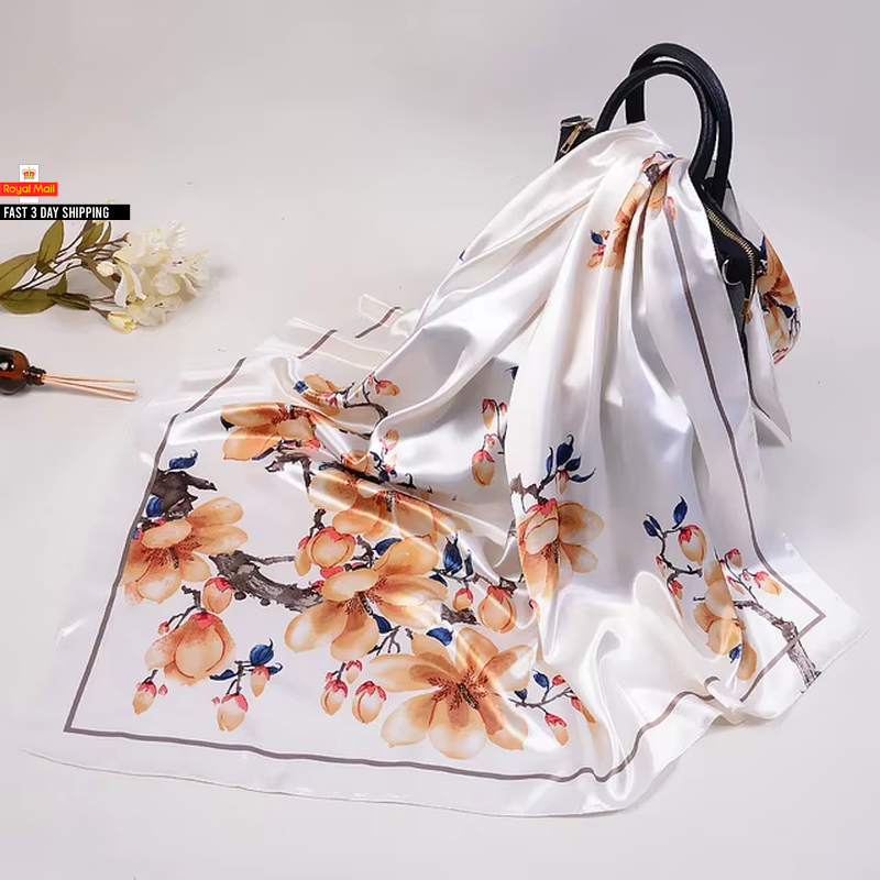 Trillion London® Spring Collection | Gold Floral Print Silk Neck Scarf For Women | Ladies Lightweight Scarves | Shawl Wraps | Suitable for Daily Life, Gifting |Smooth Soft Finish| Size-180cm*90cm