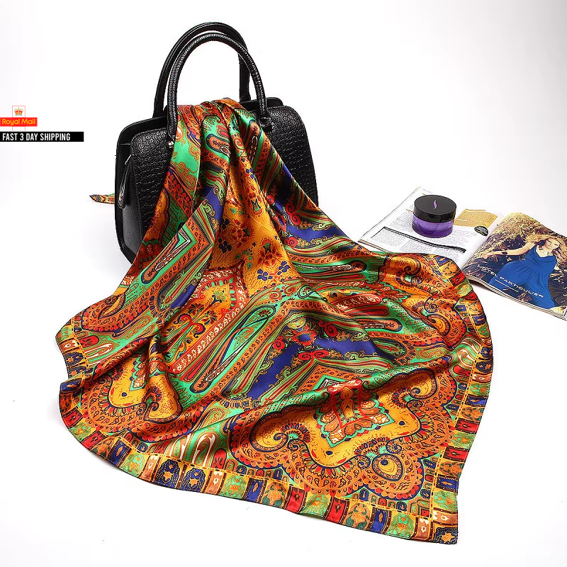 SUOXU Silk Neck Scarf Women,100% Silk Satin Square Head Scarf,Gifts for Mum,Girls Birthday Gifts,Mothers Day Gifts from Daughter,Son,Presents for Mum,Original Sand Painting Pattern Design(53 x 53cm