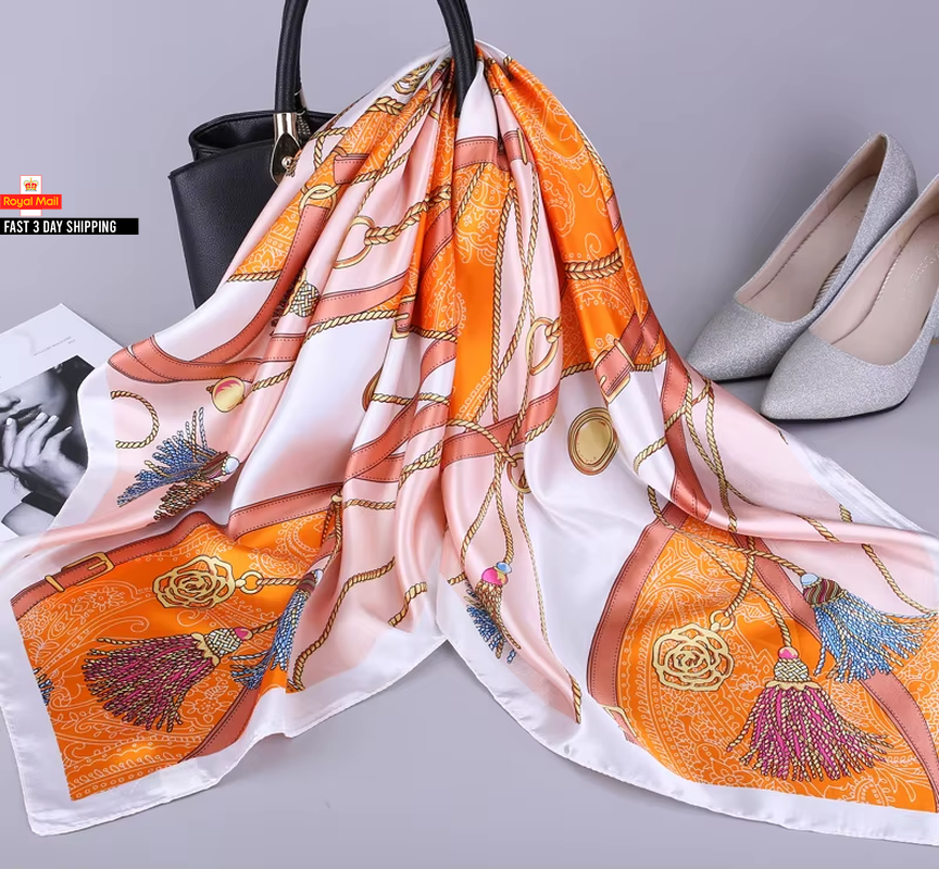 Trillion London® Silk Scarf | Orange Leopard Print Scarf | Silk Neck Scarf for Women | Lightweight Scarves for Ladies| Suitable for Gifting | Head Scarf | Shawl Wraps | Size - 180 cm * 90 cm