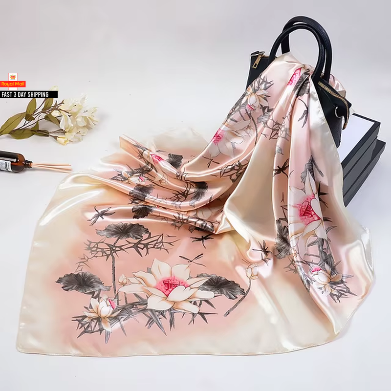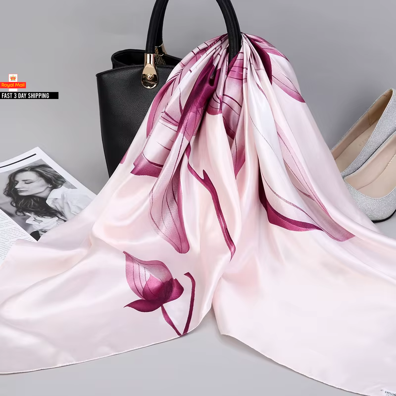 Trillion London® Spring Collection | Pink Floral Silk Neck Scarf For Women | Ladies Lightweight Scarves | Shawl Wraps | Suitable for Daily Life, Gifting | Smooth Soft Finish | Size - 180cm*90cm