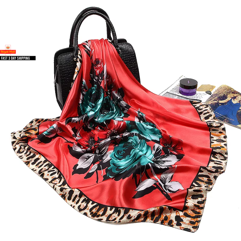 Kerchief Silk Satin Neck Scarf For Women Print Hijab Scarfs Female 210*110cm Shawls And Wraps Scarves For Lady