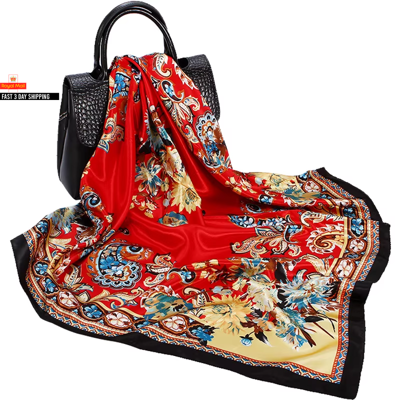 Ymapinc Silk Neck Scarf for Women Hair - 70 * 70 cm Burgundy and White Printed Satin Scarf, Soft Lightweight Fashion Square Bandanas for Sleeping