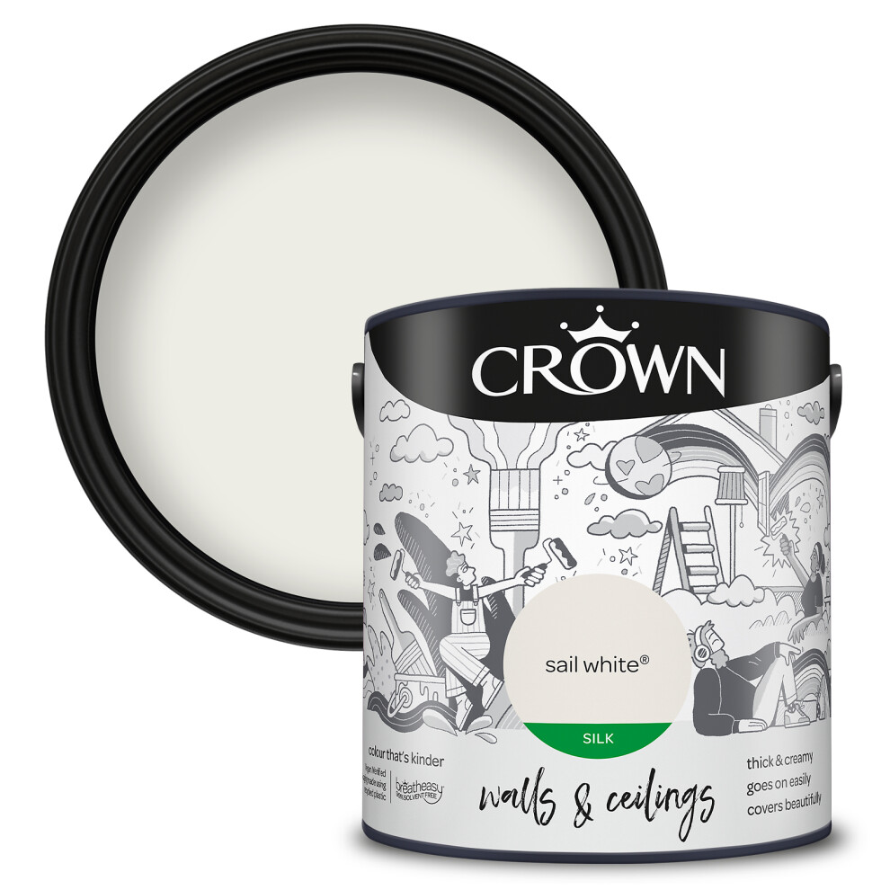 (Sail White) Crown Silk Paint Emulsion Walls & Ceilings 2.5L