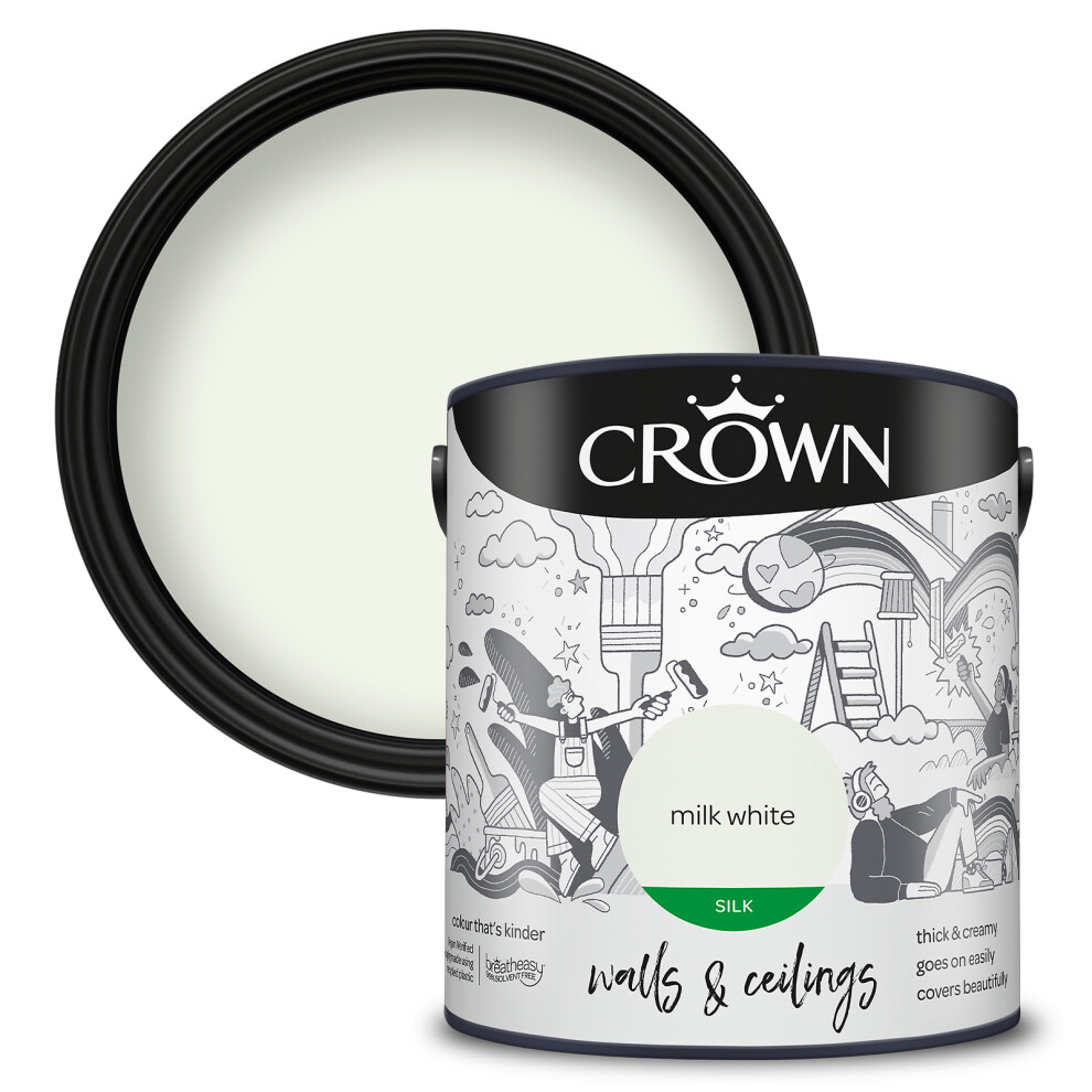 (Milk White) Crown Silk Paint Emulsion Walls & Ceilings 2.5L