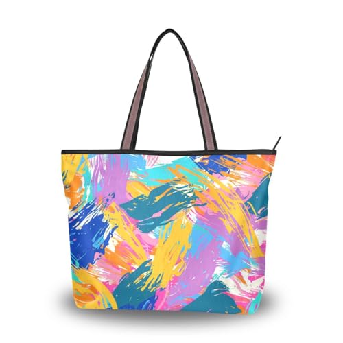 SyXIOP Colorful Splashes Of Paint silk fabric zippered cute tote bags trendy shoulder handbags for women for Everyday & Travel