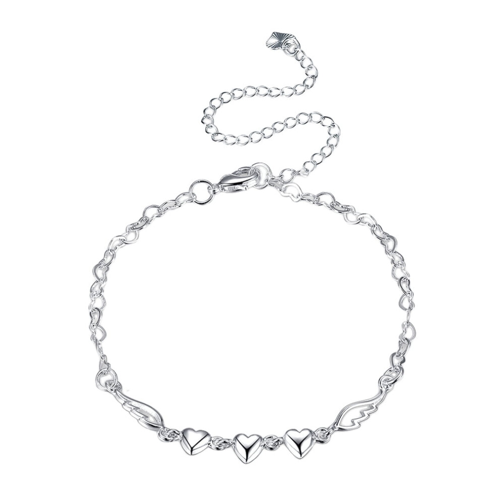 Silver ankle bracelet Silver Heart Ankle Bracelet Elegant Angel Wings Anklet with Extender Chic Foot Chain for Women