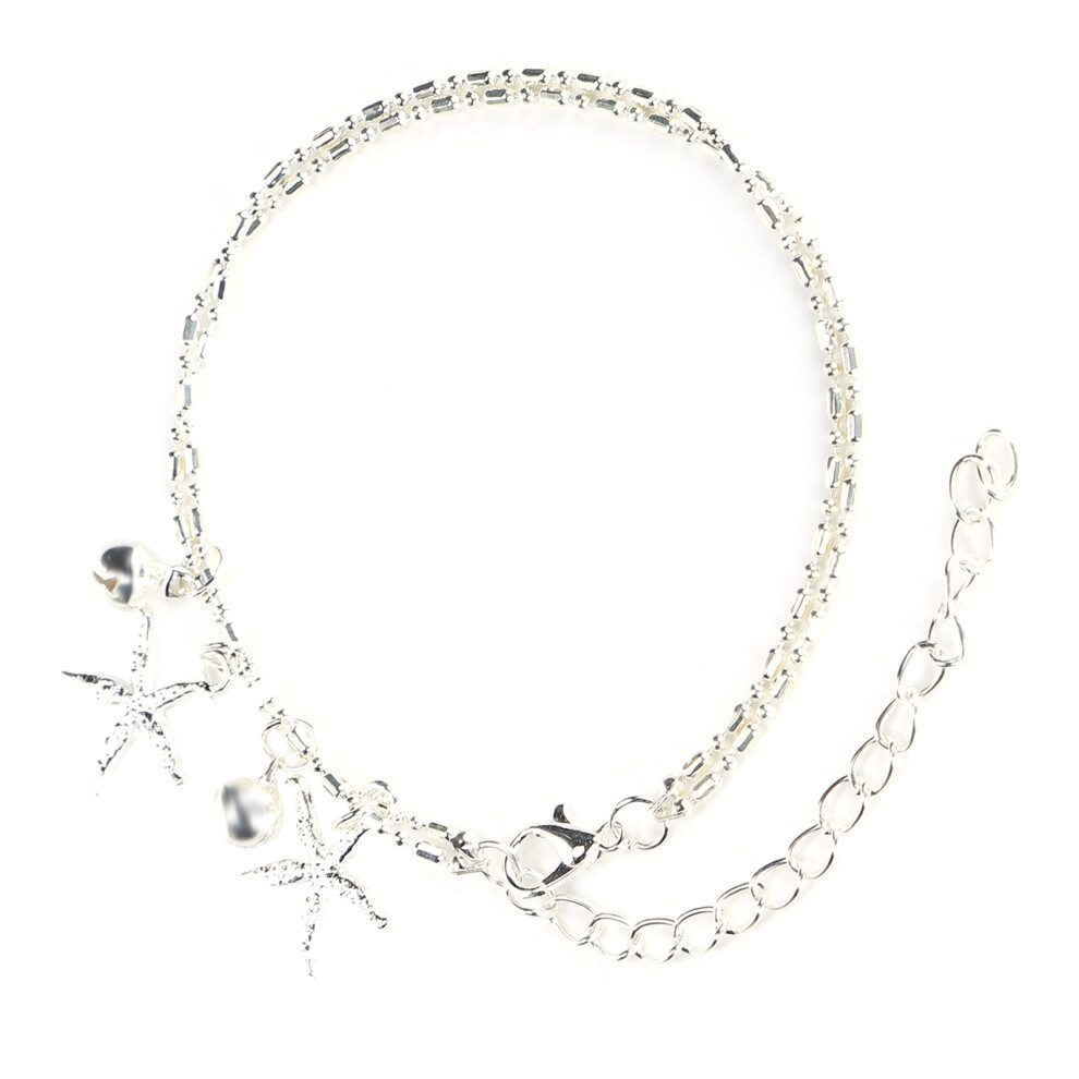 Silver Ankle Bracelet Double Layered Starfish Bell Shape Beach Foot Anklet C SG