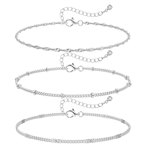 ORAZIO 3 PCS Ankle Bracelets For Women Silver Anklets Women's Anklets Waterproof Adjustable Anklets For Women Sterling Silver Ankle Bracelet