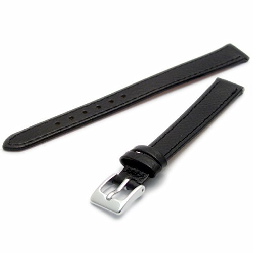 Ladies Open Ended Watch Band Strap for Vintage Watches. Genuine Leather 8mm Black with Chrome (Silver Colour) Buckle