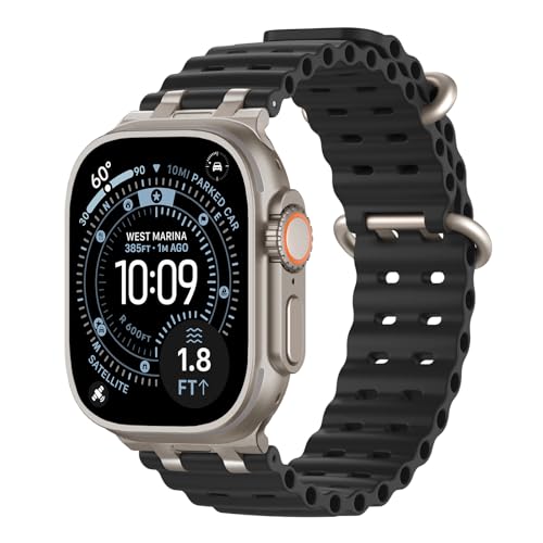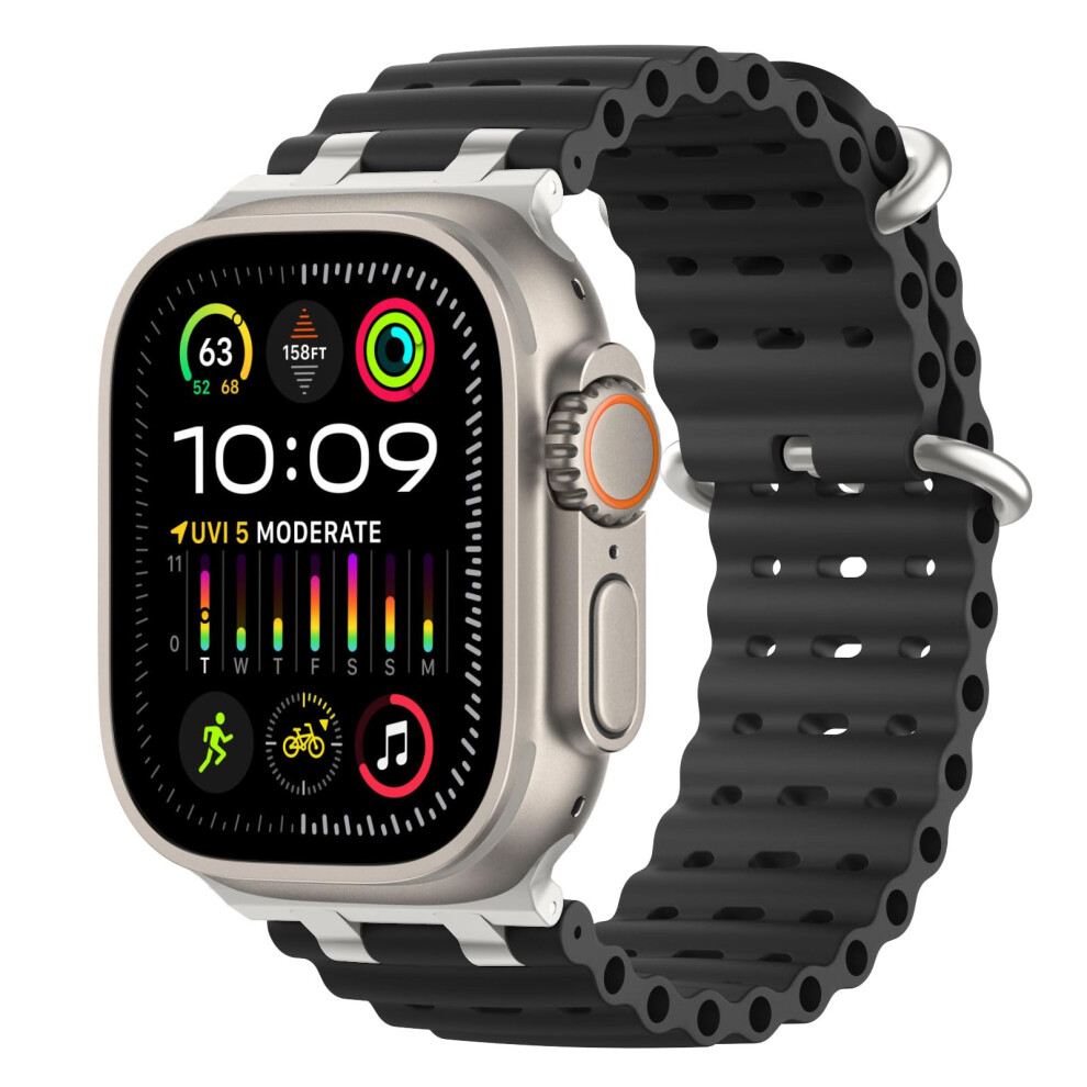 TiMOVO Ocean Strap Compatible with Apple Watch Ultra 3/2/1 49mm, Upgraded Metal Connector Breathable Sport Watch Band for Men Women, Silver/Black