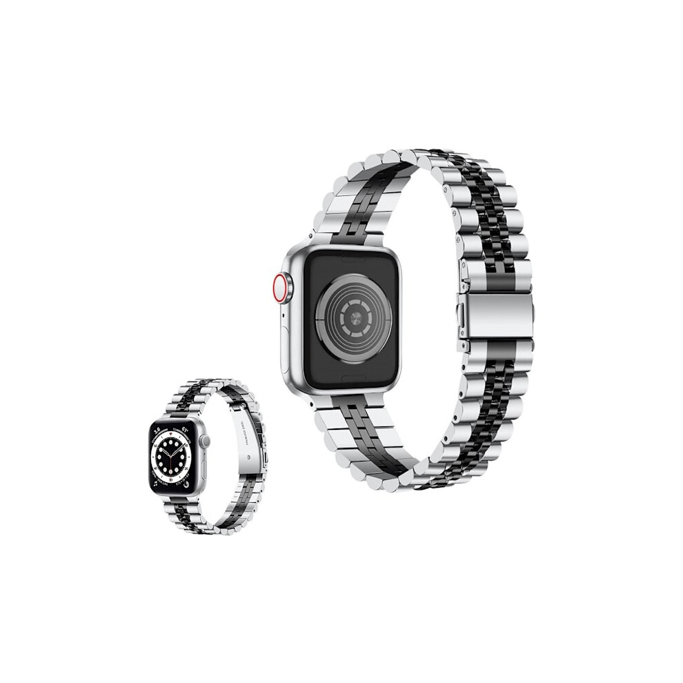 Compatible with Apple Watchwith Apple Watch 40mm Five-Bead Stainless Steel Watch Band - Silver / Black Black