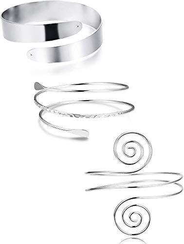 Finrezio 3Pcs Minimalist Coil Upper Armband Adjustable Cuff Armlet Arm Cuff Bracelet Filigree Swirl Silver