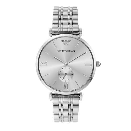 EMPORIO ARMANI Watch for Women, 32mm Two Hand Quartz Movement with Silver Tone Stainless Steel Strap