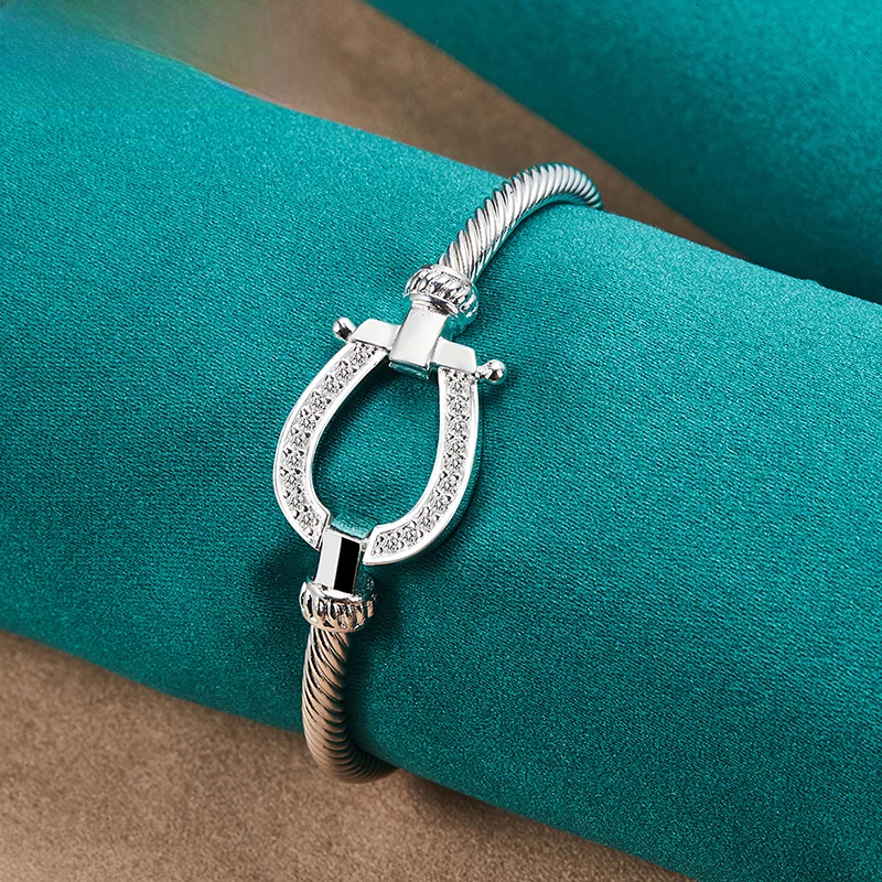 925 Sterling Silver Twisted Network Bangles For Women Cuff Bracelets Jewelry