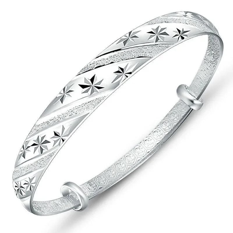 Silver Star Bangles for Women Fashion Wedding Bracelet Gift Jewelry