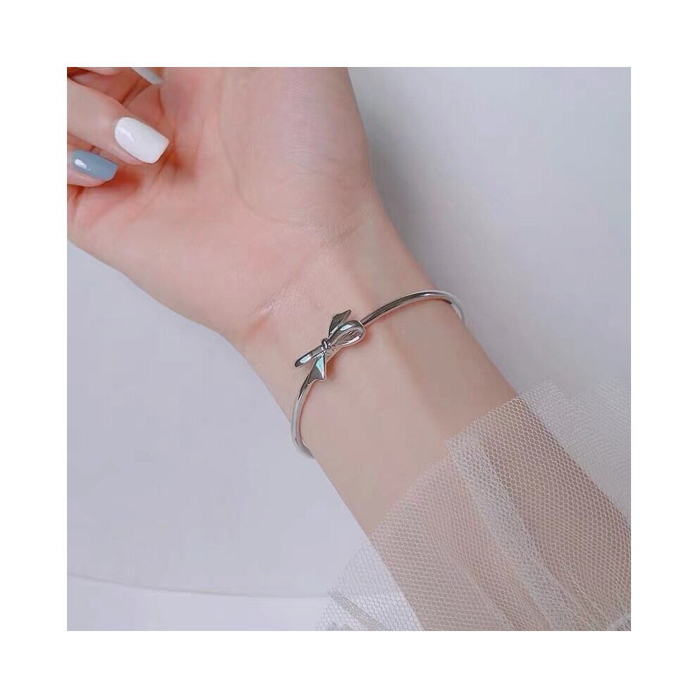 Hot Top 925 Sterling silver romantic bow Bangles for women bracelets party wedding jewelry